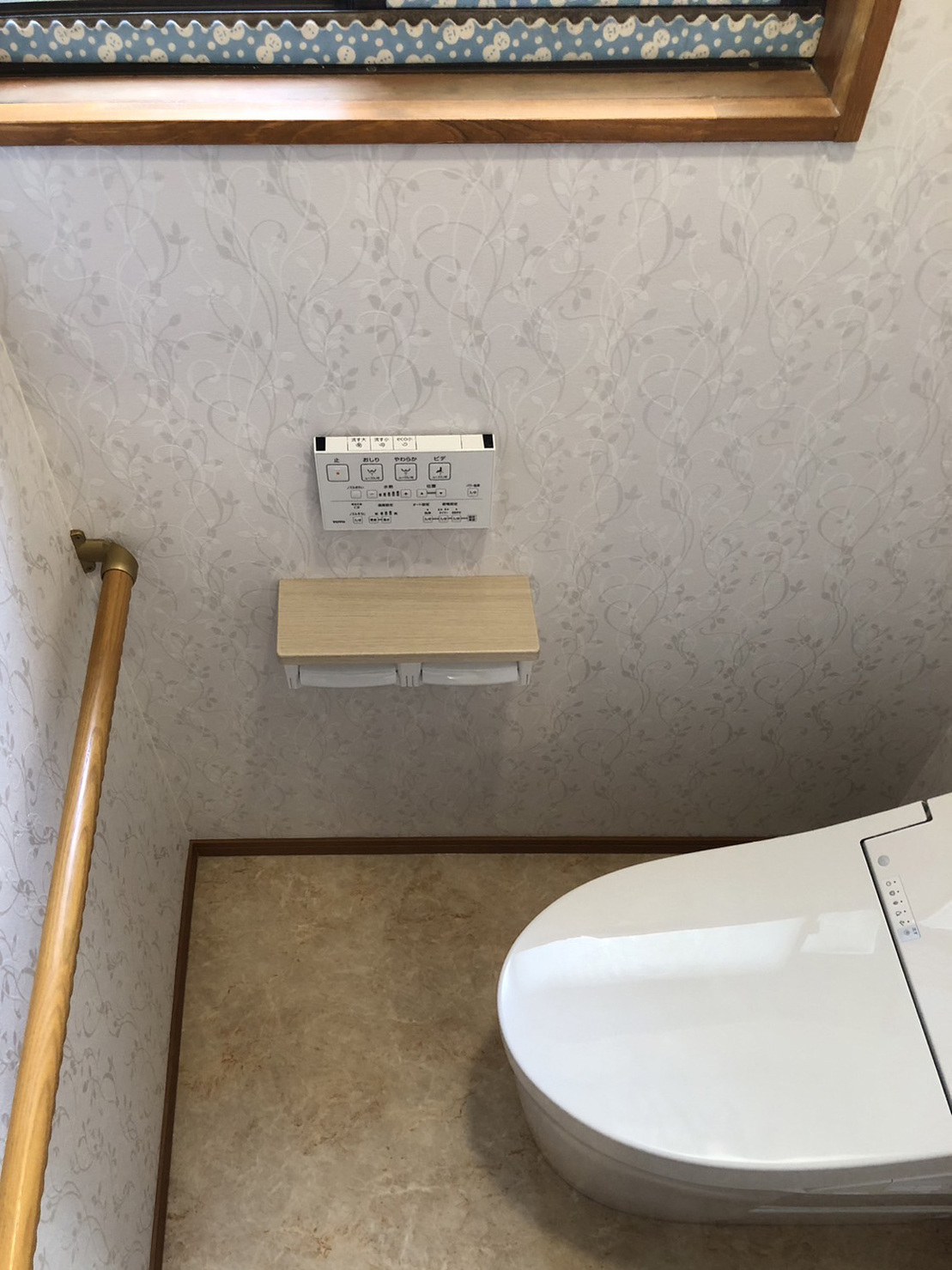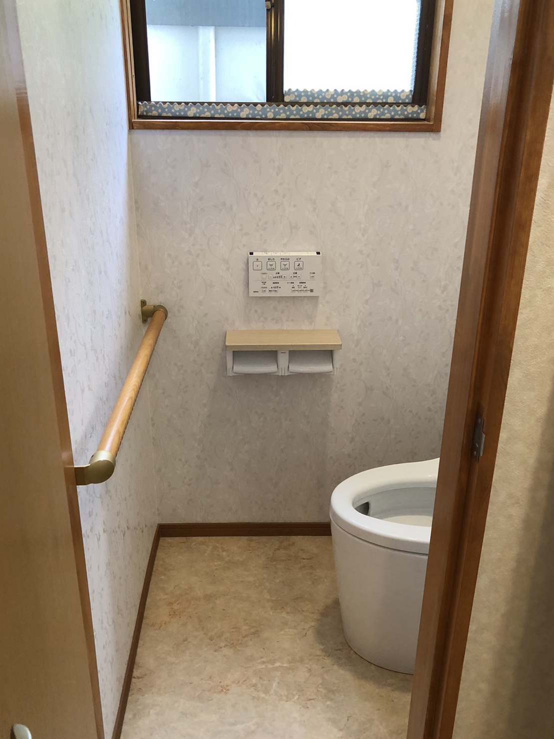 このほか浴室から連なる脱衣室とトイレは壁と床の内装を一新。洗面化粧台とトイレも交換し、明るくきれいな水まわり空間になりました。