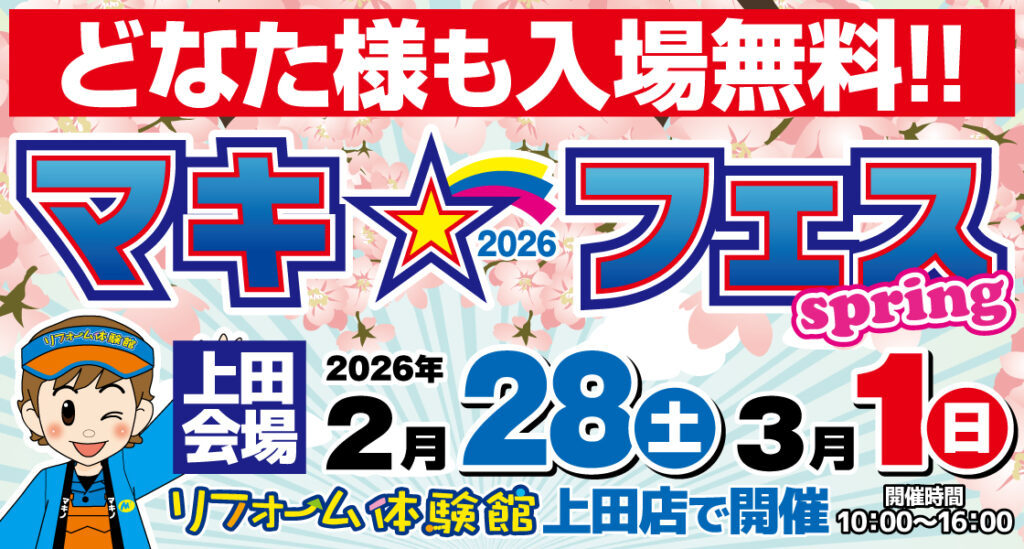 マキノのイベント「マキ★フェス2026spring 」を2026年2月28日(土)・3月1日(日)に開催!当日はマキノのショールーム「リフォーム体験館上田店(MAP)」で大人もこどもも楽しめる超参加型の楽しいブースやワー […]
