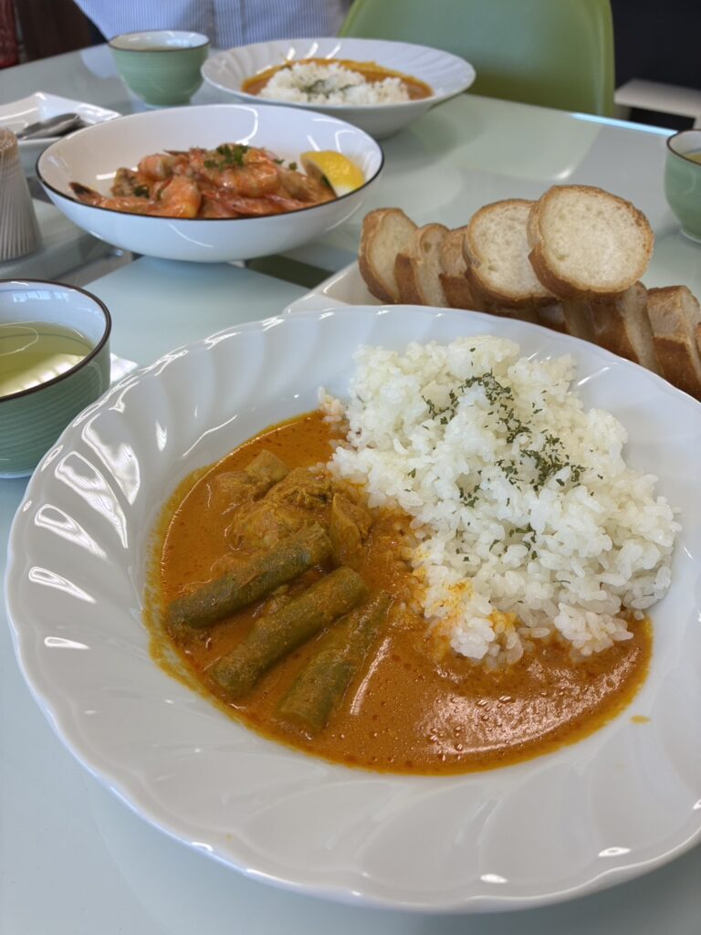 今週火曜日のまかないはガーリックシュリンプとカレー😋