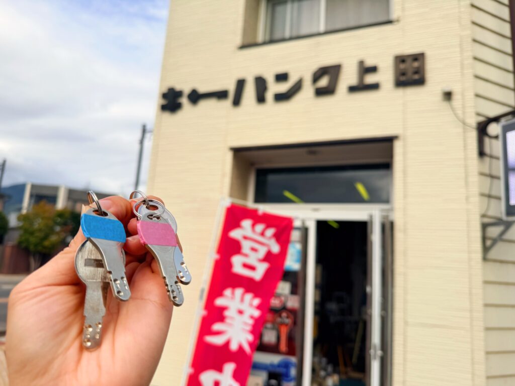 もう速攻鍵を握りしめて、ソワソワしながら近所のキーバンク上田さんへ・・