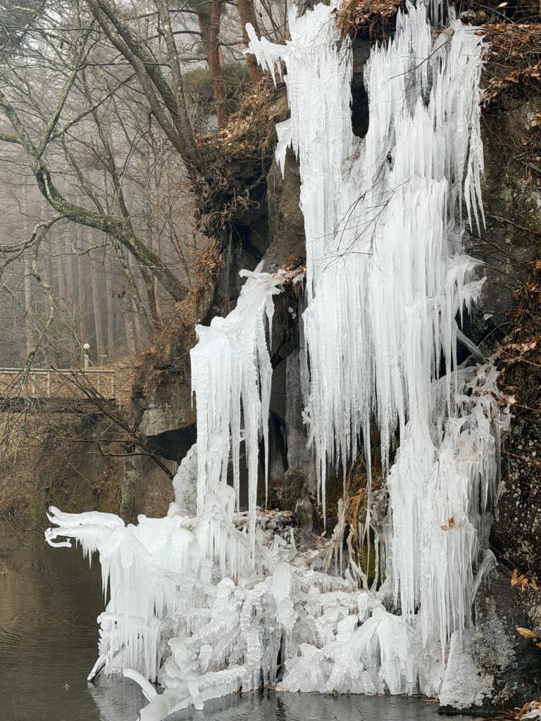 では、凍結がらみで先週出かけた先で見つけたキレイに凍結した滝の写真で締めたいと思います❄️