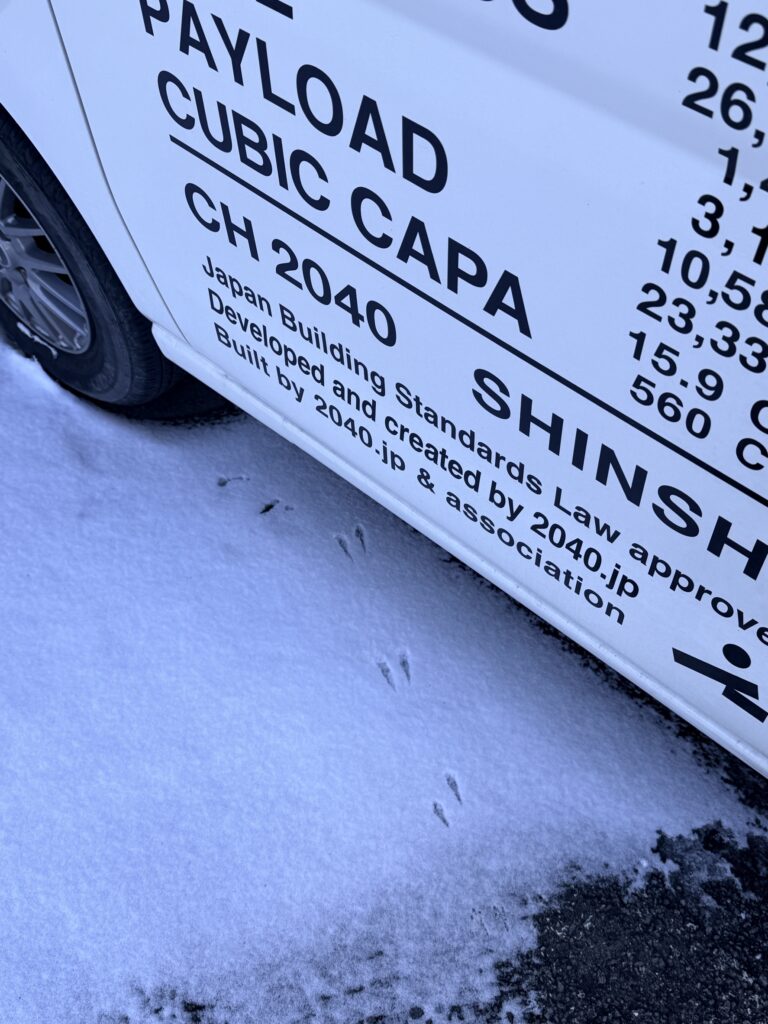 車の横に乗車を試みて 諦めたと思われる可愛いお客様の足跡を発見しました💡