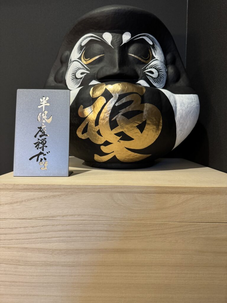 今では、本社とコンテナハウス事業部それぞれに、半眼座禅だるまを飾っています。